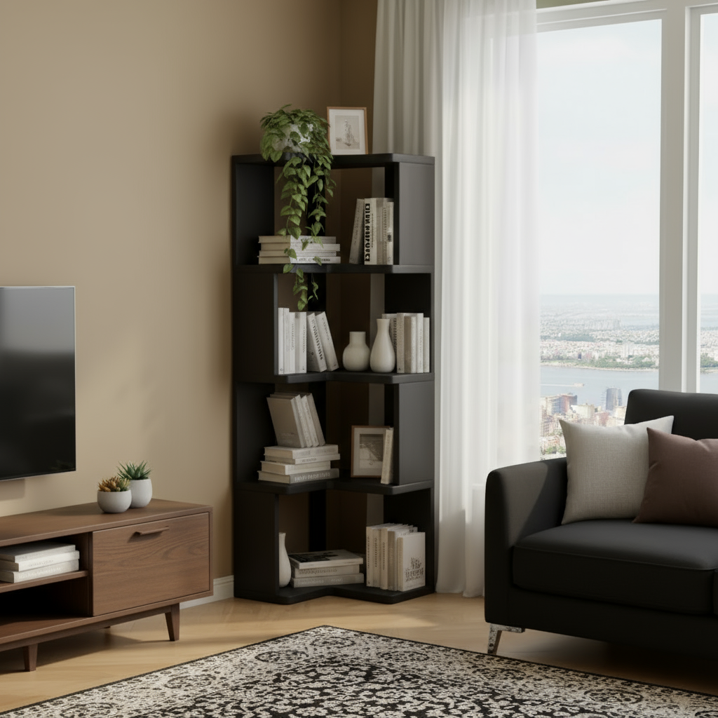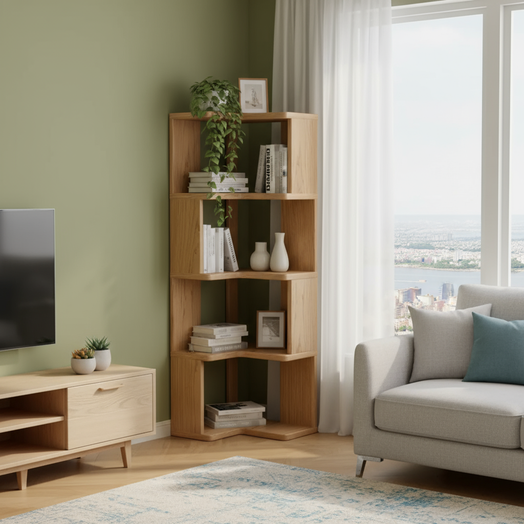 Étagère d’angle multifonctionnelle en bois massif – Design élégant et pratique pour optimiser vos espaces.